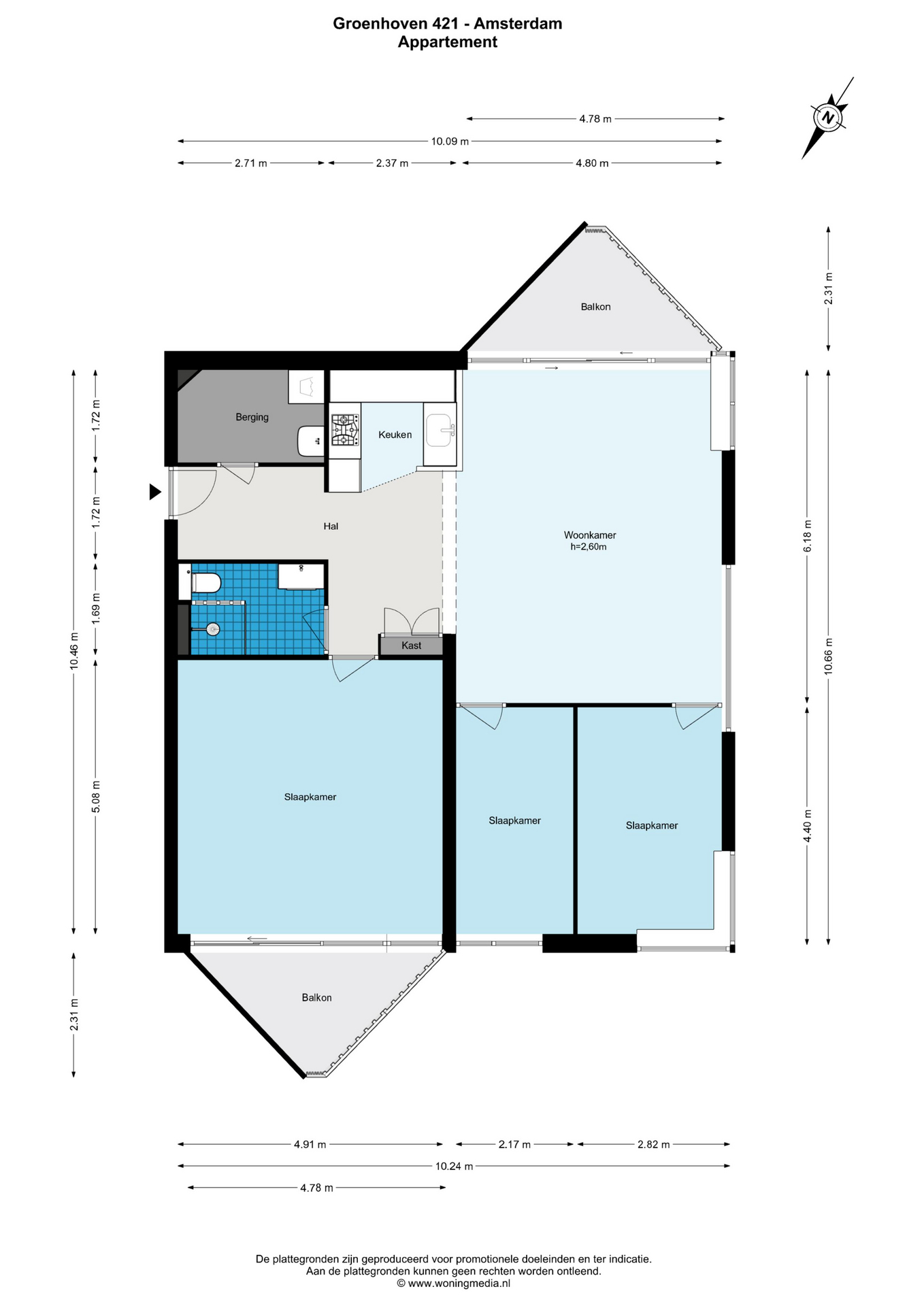 – 4 kamers, waarvan 3 slaapkamers
