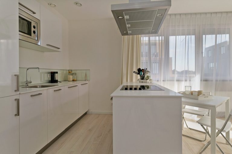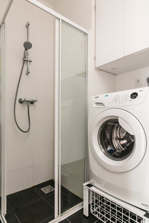 The apartment has a spacious entrance hall which gives access to all the rooms. The bright spacious living room is refined decorated and has a half open kitchen which is equipped with all the necessary equipment, dishwasher, refrigerator, freezer microwave and oven. The bathroom has a shower cabin sink and washing machine available. The whole apartment is provided with laminate floor.