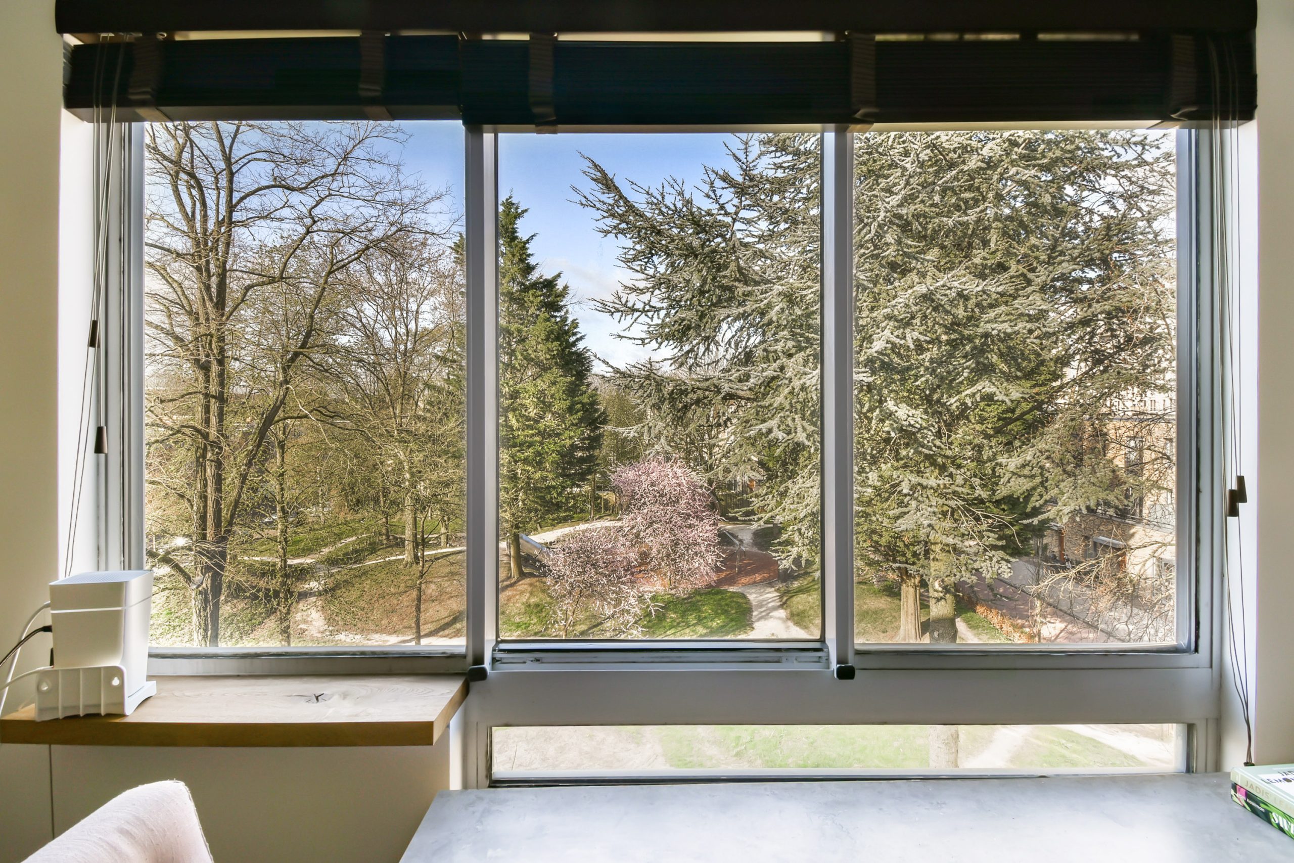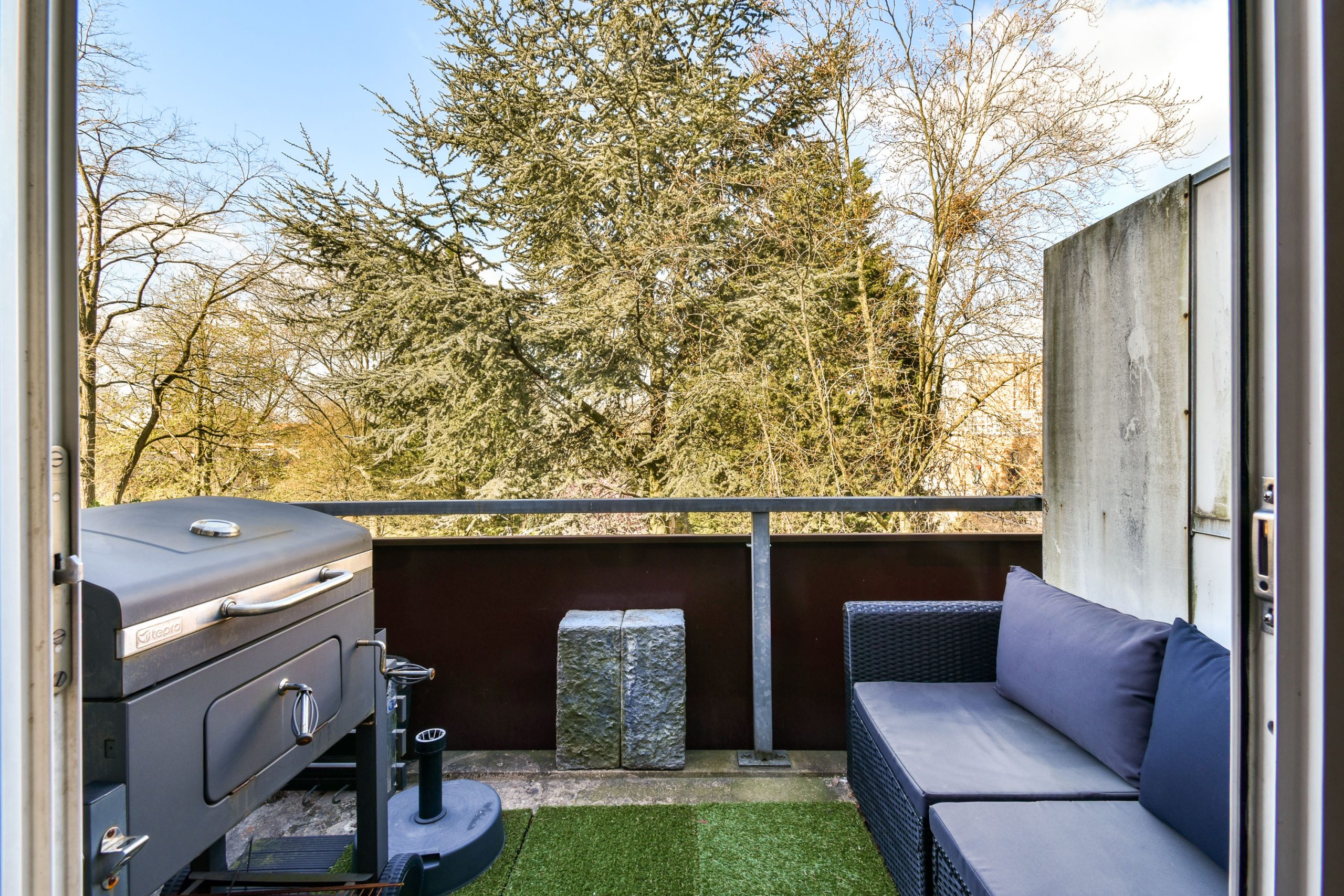 – Lichte woonkamer met grote ramen en toegang tot balkon