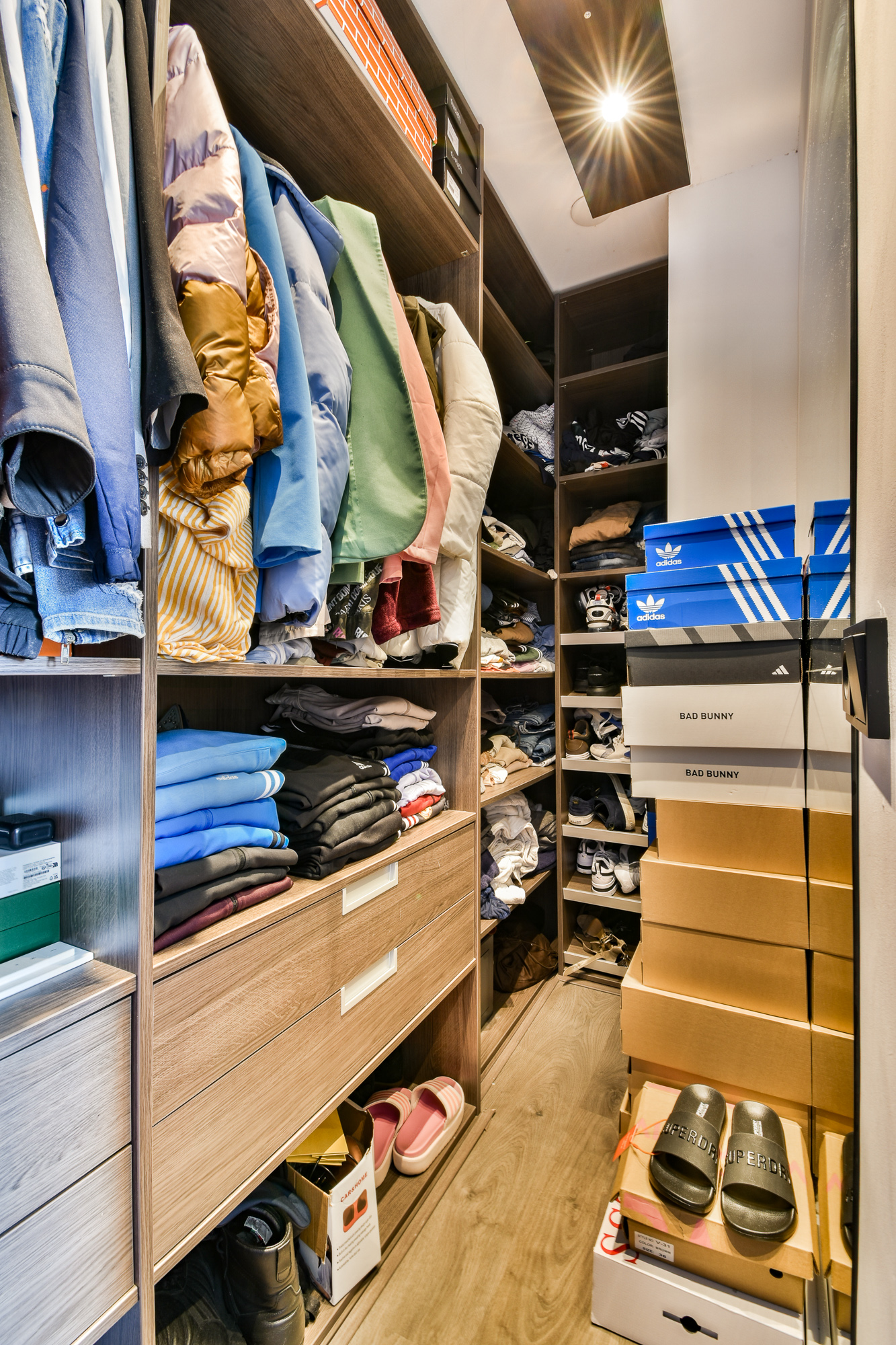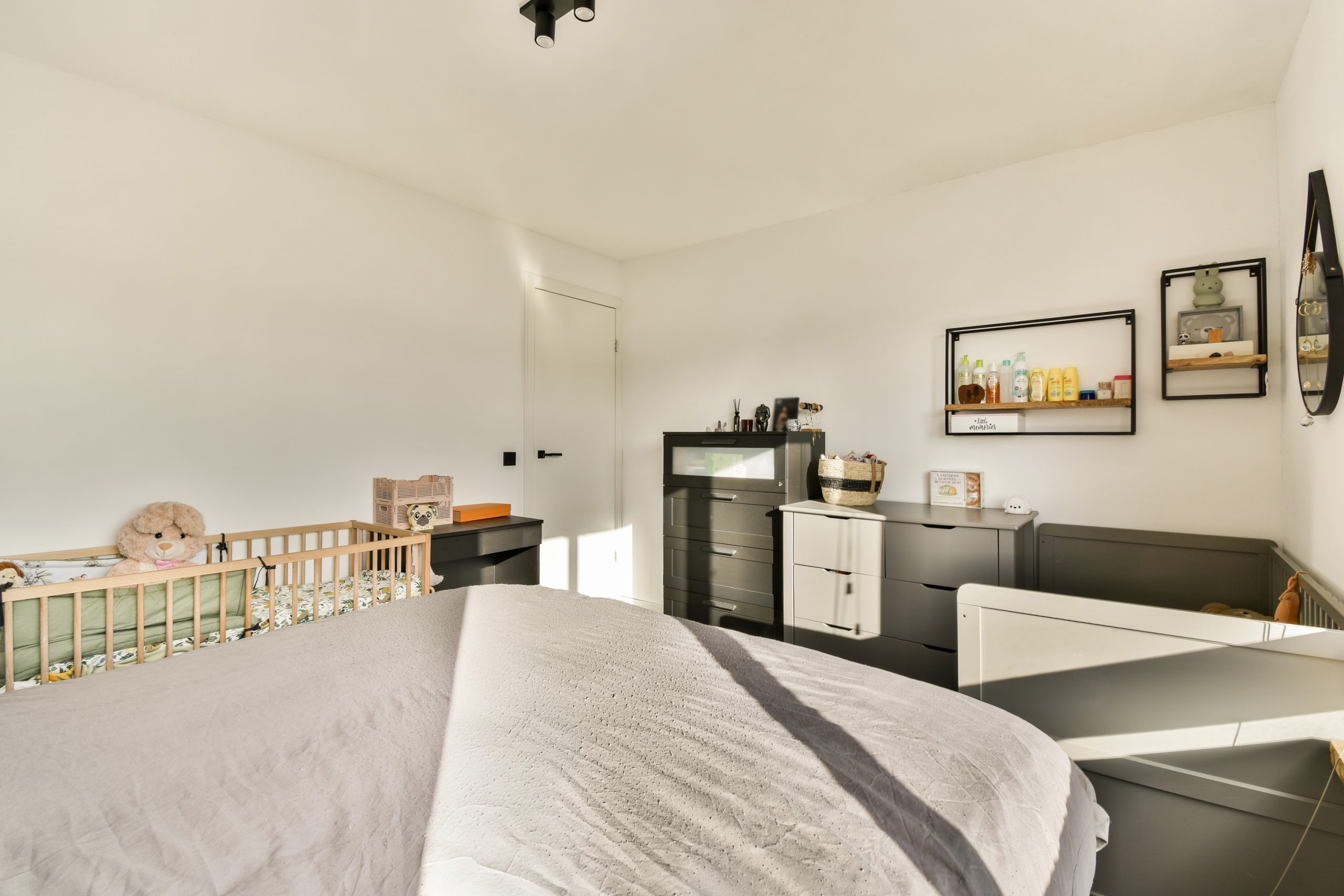 Naast de slaapkamers vind je een praktische inloopkast met ingebouwde legplanken en ruimte voor een kledingrek of linnenkast. Een ideale oplossing voor wie op zoek is naar extra bergruimte zonder in te leveren op wooncomfort.