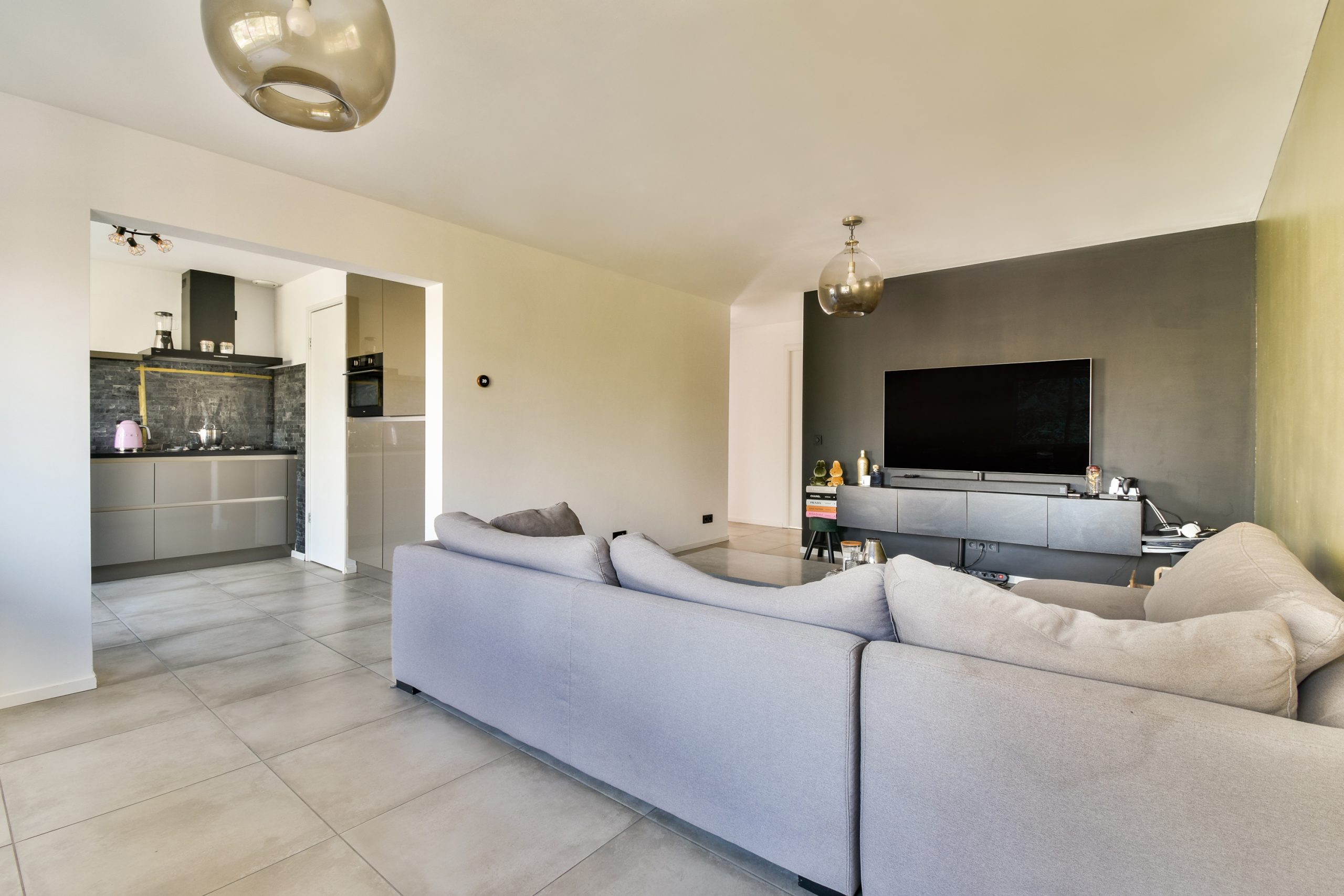 – Strakke afwerking met fraaie tegels in de woonkamer